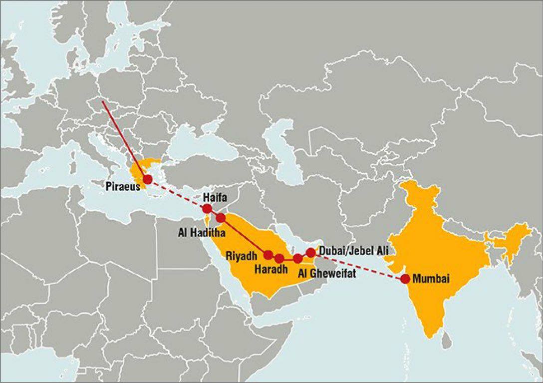 🔻 از دو کریدور تشکیل شده است: کریدور شرقی که هند را به خلیج فارس متصل می کند و کریدور شمالی که خلیج فارس را به اروپا متصل می کند. هدف این پروژه تحریک توسعه اقتصادی از طریق گسترش روابط تجاری بین کشورهای آسیایی، خاورمیانه و اتحادیه اروپا خواهد بود.