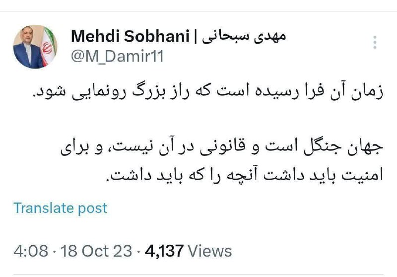 توییت رمزآلود سفیر ایران در ارمنستان که از احتمال در اختیار داشتن سلاح هسته ای توسط ایران خبر می دهد: