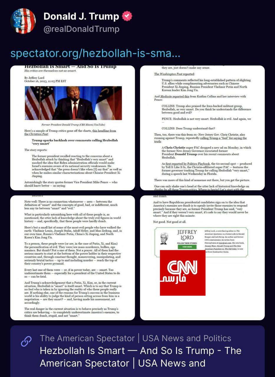 🔹️ «حزب الله باهوش است – ترامپ هم همینطور!» دیدگاهتان را بنویسید لغو پاسخدیدگاهبرای ارسال دیدگاه نام یا نامکاربری خود را وارد کنید برای ارسال دیدگاه آدرس ایمیل خود را وارد کنید آدرس وبسایت خود را وارد کنید (اختیاری) ذخیره نام، ایمیل و وبسایت من در مرورگر برای زمانی که دوباره دیدگاهی مینویسم. Δ
