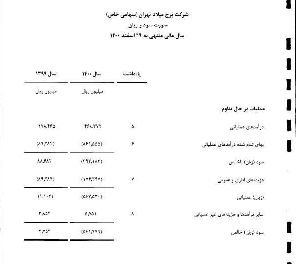 📌برج میلاد تهران در سال ۱۴۰۰ کلا ۴۶ میلیارد تومان درآمد عملیاتی داشته و ۵۶ میلیارد زیان ساخته!