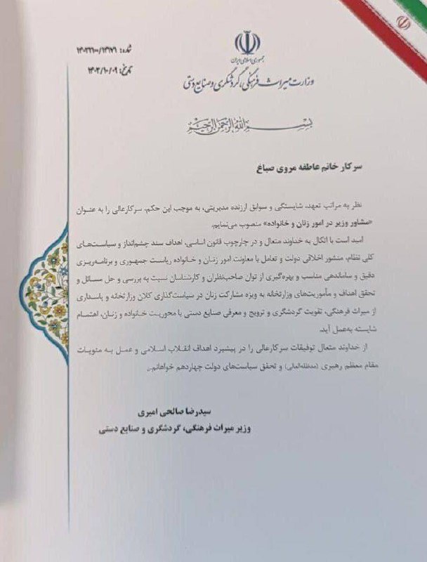 در دولت وفاق ملی عاطفه مروی صباغ، خواهر زادهی انسیه و کبری خزعلی که عموش رئیس آستان قدس است، حکم مشاور امور زنان و خانواده وزیر میراث فرهنگی را میگیرد! چرا؟ مگر قرار نبود پزشکیان نامزد جبهه اصلاحات جای خانوادهسالاری از یک جناح خاص، شایستهسالاری و تخصص را مبنا قرار دهد؟!