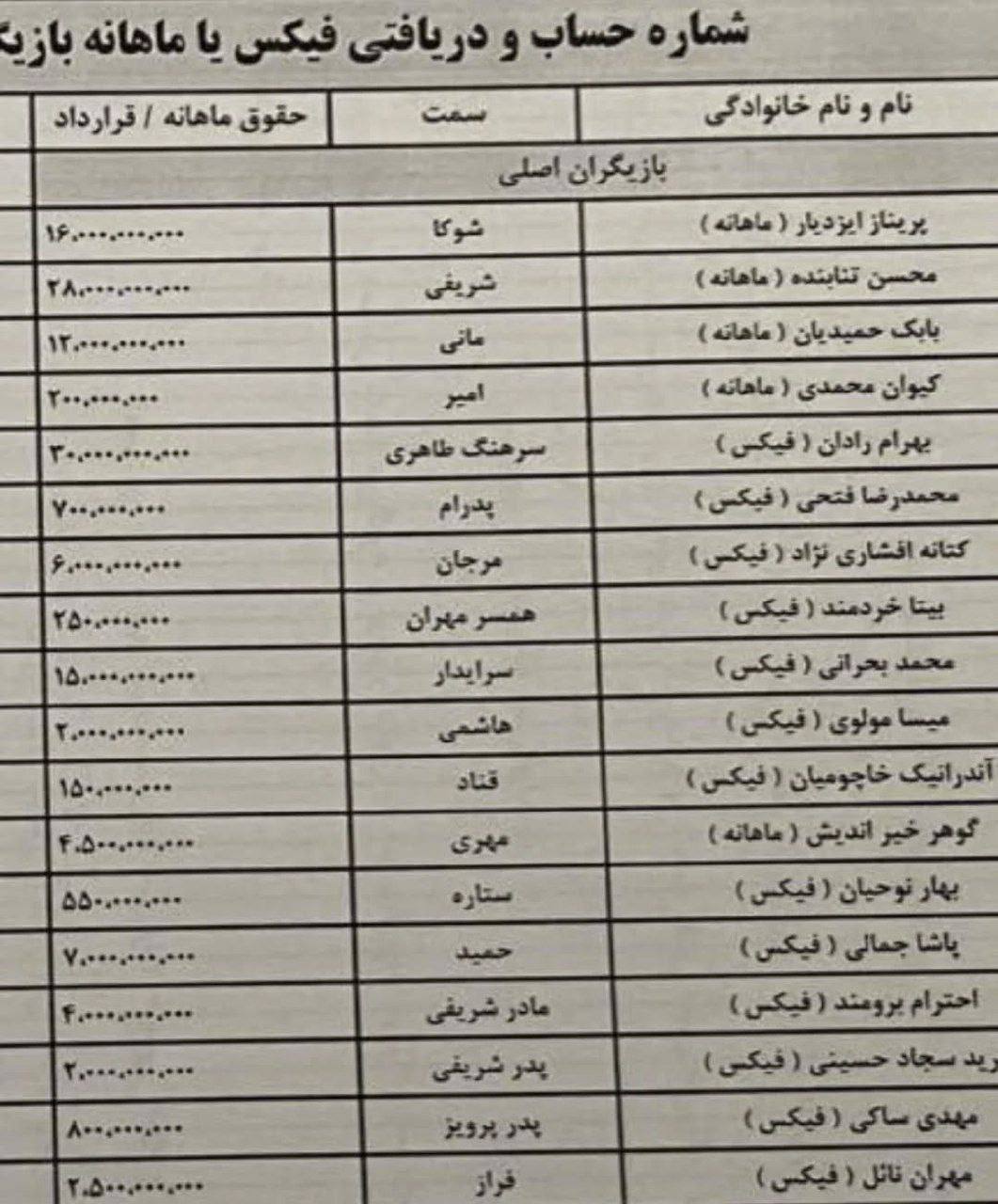 ↩️ بهرام رادان ٣میلیارد، محمد بحرانی ١ میلیارد و ۵٠٠، بابک حمیدیان ١میلیارد و دویست میلیون تومان فیکس!