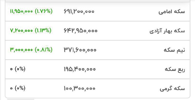 قیمت سکه از ۶۹ میلیون تومان گذشت. دیدگاهتان را بنویسید لغو پاسخدیدگاهبرای ارسال دیدگاه نام یا نامکاربری خود را وارد کنید برای ارسال دیدگاه آدرس ایمیل خود را وارد کنید آدرس وبسایت خود را وارد کنید (اختیاری) ذخیره نام، ایمیل و وبسایت من در مرورگر برای زمانی که دوباره دیدگاهی مینویسم. Δ