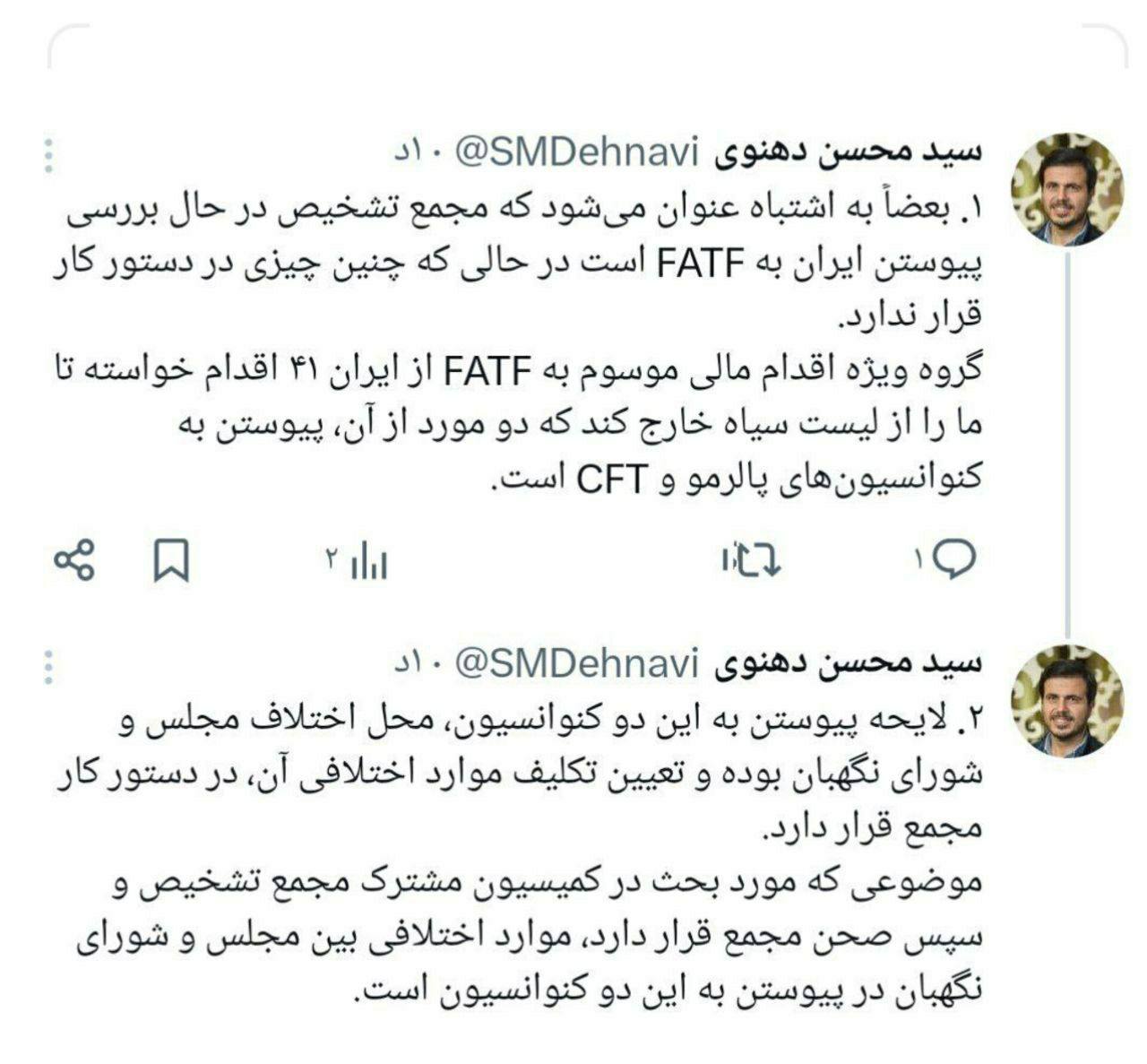 سخنگوی مجمع تشخیص مصلحت نظام: 🔸️پیوستن ایران به FATF در دستور کار قرار ندارد. دیدگاهتان را بنویسید لغو پاسخدیدگاهبرای ارسال دیدگاه نام یا نامکاربری خود را وارد کنید برای ارسال دیدگاه آدرس ایمیل خود را وارد کنید آدرس وبسایت خود را وارد کنید (اختیاری) ذخیره نام، ایمیل و وبسایت من در مرورگر برای زمانی که دوباره دیدگاهی مینویسم. Δ