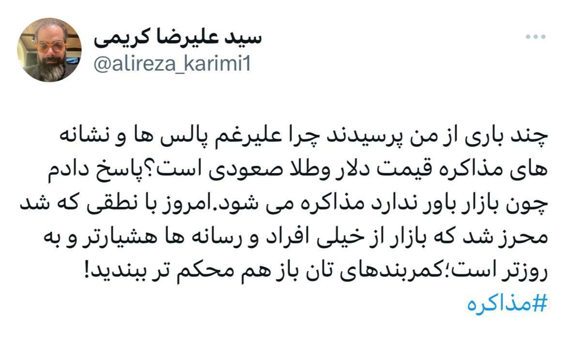 🔸️چند باری از من پرسیدند چرا علیرغم پالس ها و نشانه های مذاکره قیمت دلار وطلا صعودی است؟پاسخ دادم چون بازار باور ندارد مذاکره می شود.امروز با نطقی که شد محرز شد که بازار از خیلی افراد و رسانه ها هشیارتر و به روزتر است؛کمربندهای تان باز هم محکم تر ببندید!