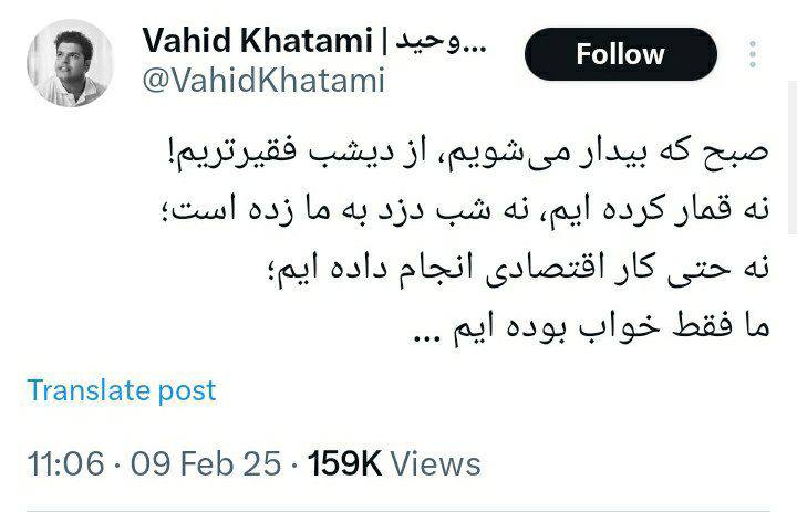 🔸️صبح که بیدار میشویم، از دیشب فقیرتریم! نه قمار کرده ایم، نه شب دزد به ما زده است؛ نه حتی کار اقتصادی انجام داده ایم؛ ما فقط خواب بوده ایم … دیدگاهتان را بنویسید لغو پاسخدیدگاهبرای ارسال دیدگاه نام یا نامکاربری خود را وارد کنید برای ارسال دیدگاه آدرس ایمیل خود را وارد کنید آدرس وبسایت خود را وارد کنید (اختیاری) ذخیره نام، ایمیل و وبسایت من در مرورگر برای زمانی که دوباره دیدگاهی مینویسم. Δ