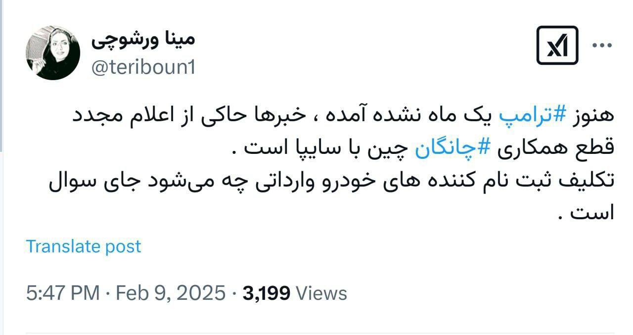 🔹تکلیف ثبت نام کننده های خودرو وارداتی چه میشود جای سوال است . دیدگاهتان را بنویسید لغو پاسخدیدگاهبرای ارسال دیدگاه نام یا نامکاربری خود را وارد کنید برای ارسال دیدگاه آدرس ایمیل خود را وارد کنید آدرس وبسایت خود را وارد کنید (اختیاری) ذخیره نام، ایمیل و وبسایت من در مرورگر برای زمانی که دوباره دیدگاهی مینویسم. Δ