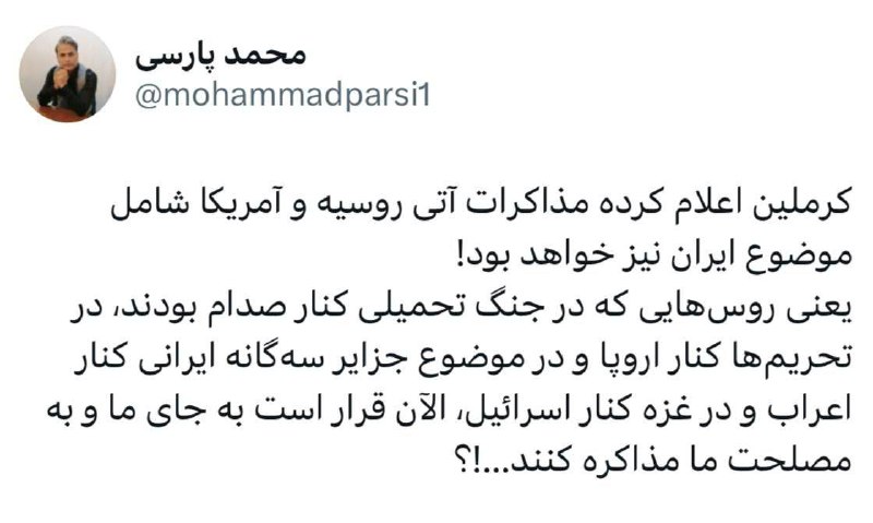 یعنی روسهایی که در جنگ تحمیلی کنار صدام بودند، در تحریمها کنار اروپا و در موضوع جزایر سهگانه ایرانی کنار اعراب و در غزه کنار اسرائیل، الآن قرار است به جای ما و به مصلحت ما مذاکره کنند