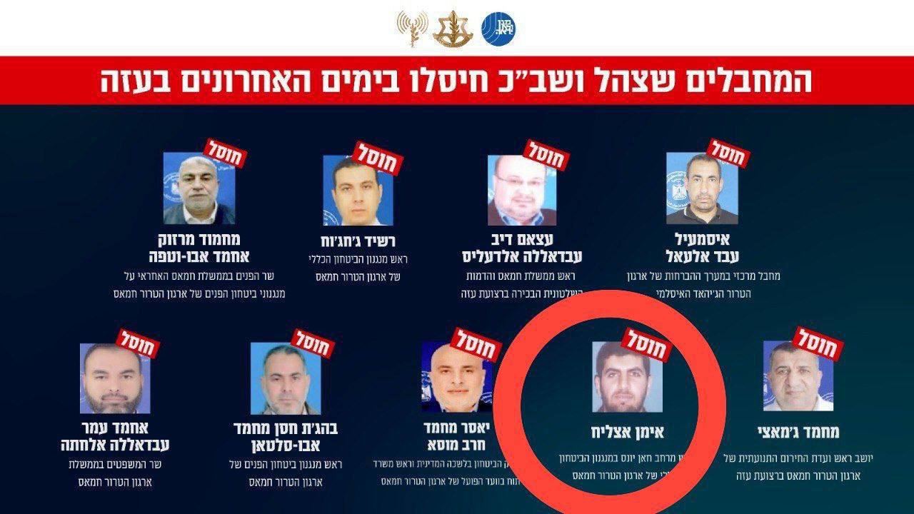 در همین عملیات، ایمن اصلیح، رئیس منطقه خانیونس در امنیت عمومی حماس نیز به هلاکت رسید.