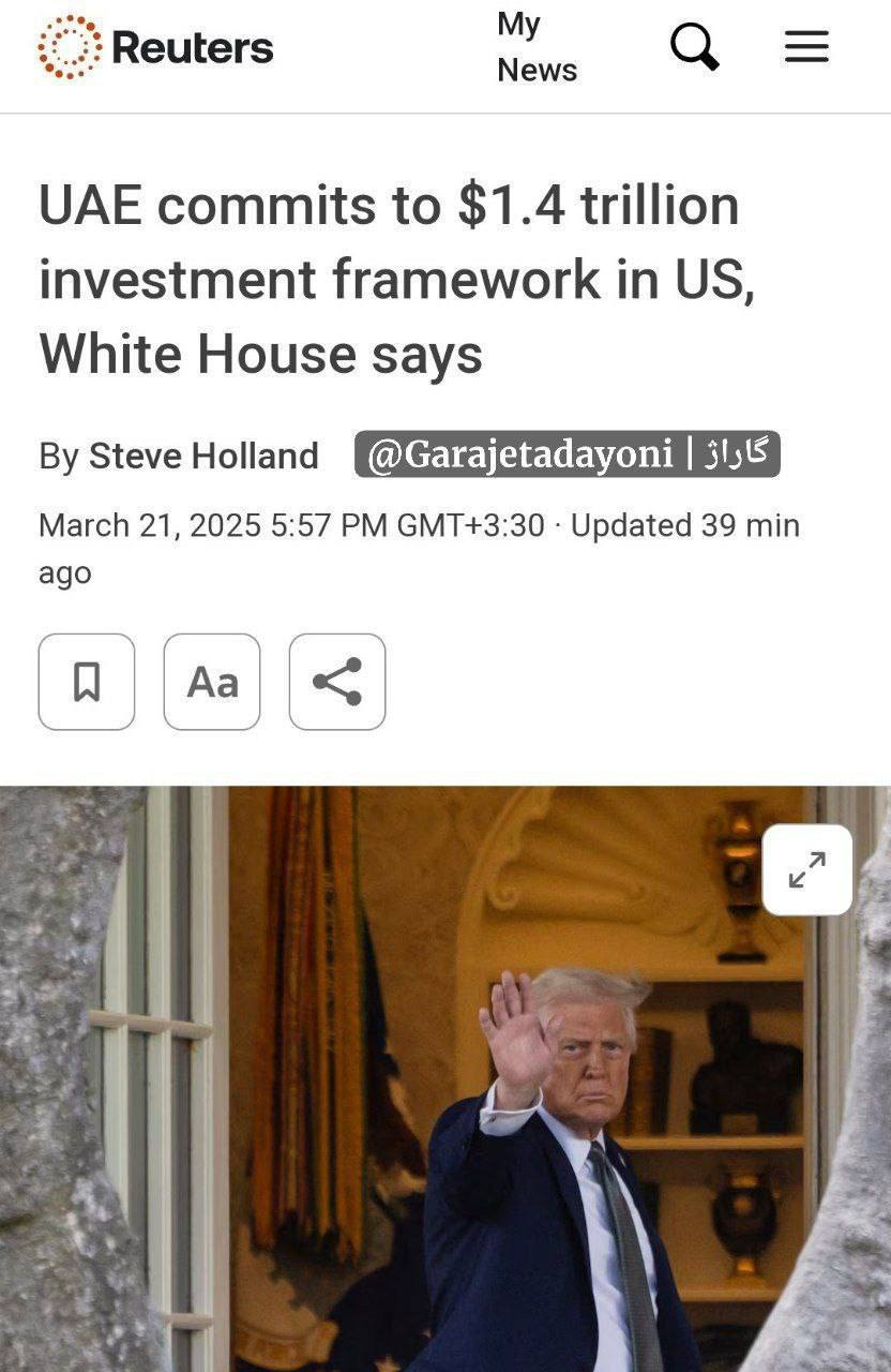 امارات ۱٫۴ تریلیون دلار در آمریکا سرمایهگذاری میکند دولت امارات متعهد شد که در ۱۰ سال آینده، ۱٫۴ تریلیون دلار روی صنایع مختلف آمریکا ازجمله حوزهی آیندهدار هوش مصنوعی سرمایهگذاری کند. دیدگاهتان را بنویسید لغو پاسخدیدگاهبرای ارسال دیدگاه نام یا نامکاربری خود را وارد کنید برای ارسال دیدگاه آدرس ایمیل خود را وارد کنید آدرس وبسایت خود را وارد کنید (اختیاری) ذخیره نام، ایمیل و وبسایت من در مرورگر برای زمانی که دوباره دیدگاهی مینویسم. Δ