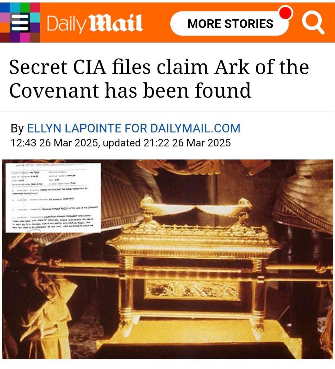 براساس اسنادی که دیلی میل منتشر کرده ، مدعی شده که سیا در سال ۱۹۸۸ صندوق عهد (Arc of Covenant) رو پیدا کرده ، اما به علت اینکه توسط نیروهای مرموزی محافظت میشه نمیشه بهش دست زد .