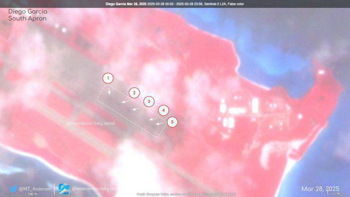 🔸️تصاویر ماهوارهای جدید که امروز توسط یکی از فعالین در امور اطلاعات منبع باز(OSINT)منتشر شد، نشان میدهد که دستکم ۵ بمبافکن راهبردی رادارگریز B-2 “اسپیریت” در پایگاه دیگو گارسیا در اقیانوس هند مستقر شدهاند.