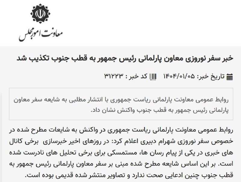 آنچه در ماجرای عزل معاون پارلمانی رئیسجمهور بیش از هرچیزی خودنمایی کرد و سوالبرانگیز و حتی شائبه برانگیز شد، تکذیبیه عجیب معاونت پارلمانی بود. مشخص نیست هنگامی که دبیری در سفر به قطب جنوب به سر میبرده است، علت چنین تکذیبیهای و رد کردن اصالت خبر و تصاویر چه بوده است؟!