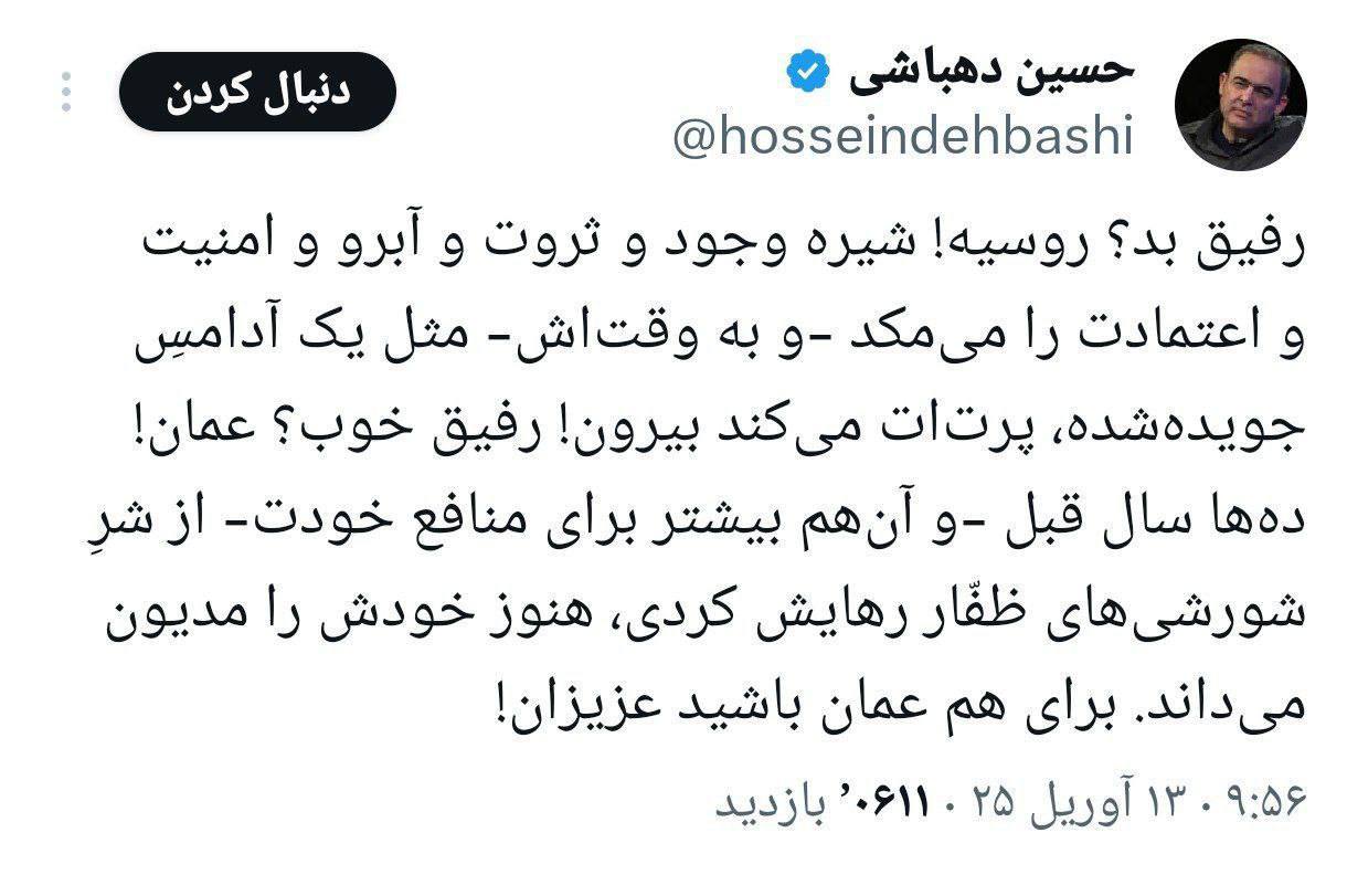 روسیه! شیره وجود و ثروت و آبرو و امنیت و اعتمادت را میمکد -و به وقتاش- مثل یک آدامسِ جویدهشده، پرتات میکند بیرون!