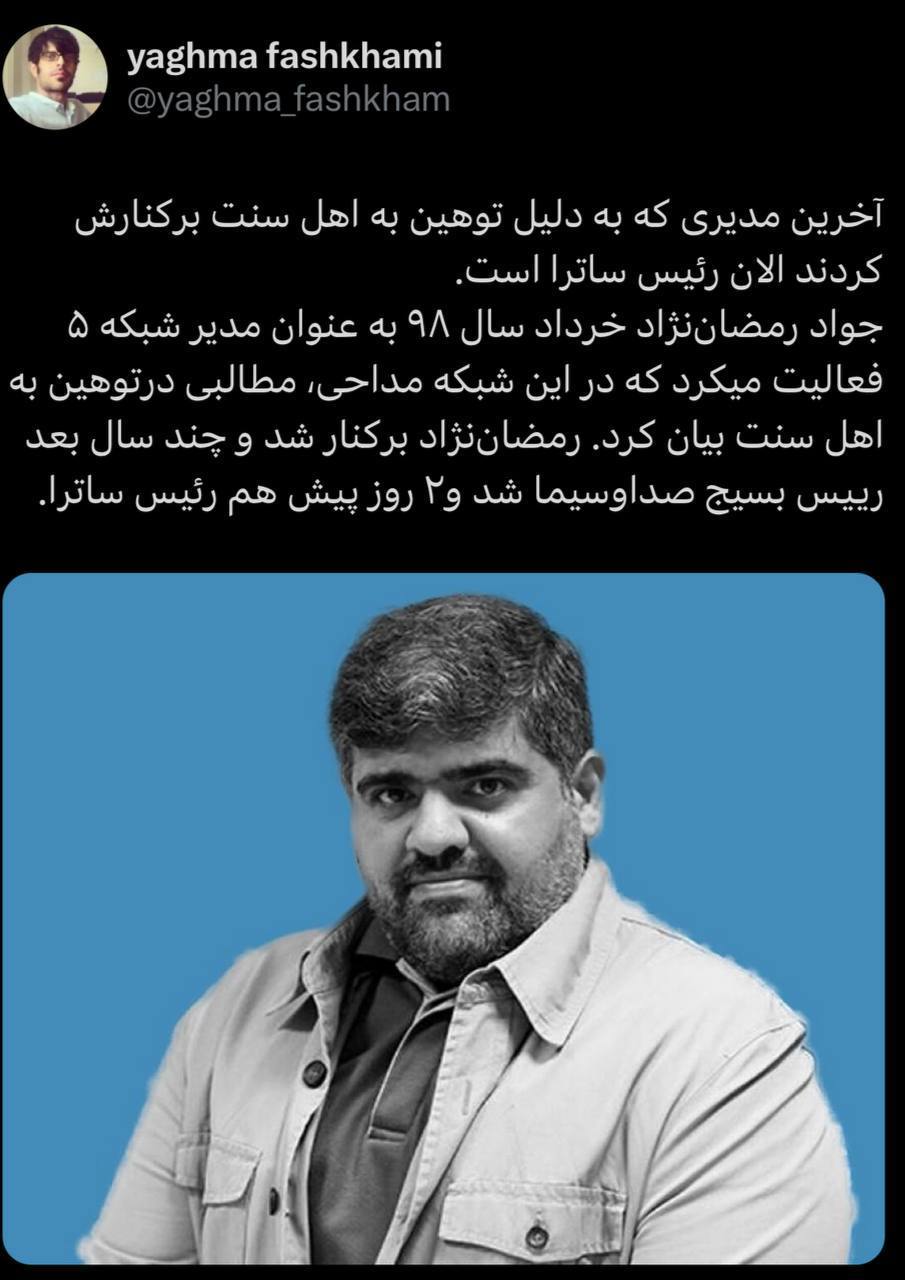 آخرین مدیری که به دلیل توهین به اهل سنت برکنارش کردند الان رئیس ساترا است.