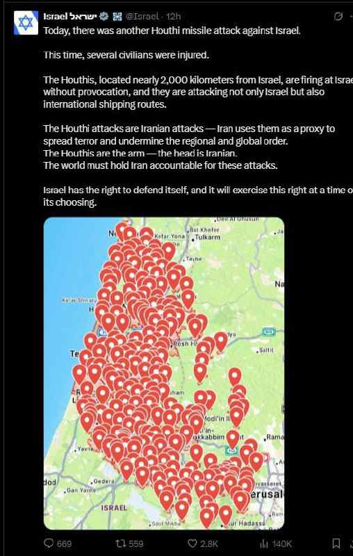 حوثیها که در فاصلهای نزدیک به ۲۰۰۰ کیلومتر از اسرائیل قرار دارند، بدون هیچگونه تحریک قبلی به اسرائیل حمله میکنند؛ آنها نه تنها اسرائیل بلکه مسیرهای بینالمللی کشتیرانی را نیز هدف قرار دادهاند.