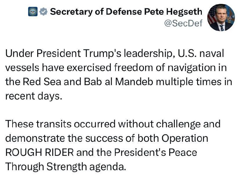 تحت رهبری رئیس جمهور ترامپ، کشتیهای نیروی دریایی ایالات متحده در روزهای اخیر چندین بار آزادی دریانوردی را در دریای سرخ و باب المندب تمرین کردهاند.