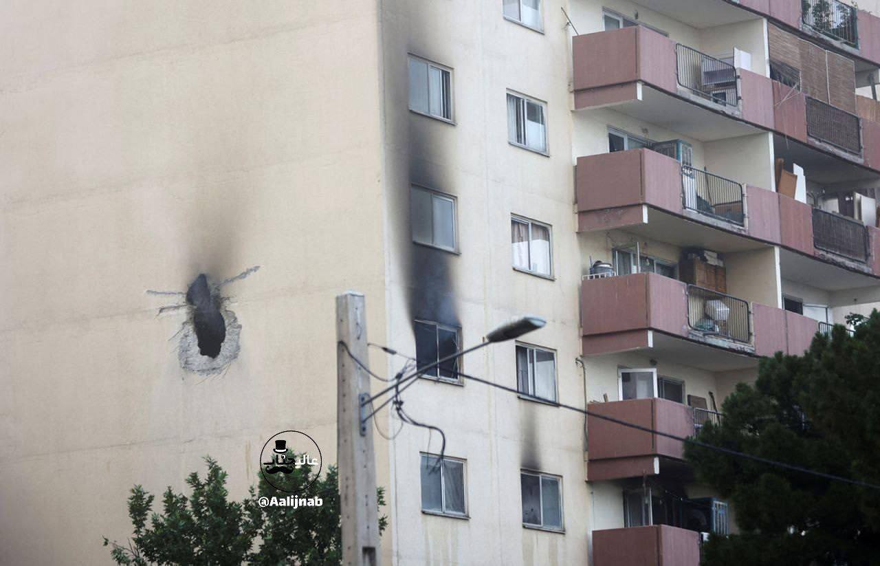 یکی از خانههایی که در جریان حمله دیشب مورد هدف قرار گرفته است. موشک از دیوار وارد خانه و در اتاق خواب منفجر شد. با توجه به شکل و ابعاد سوراخ، احتمالا یک موشک اسپایک NLOS است که تقریبا با 2 مگاژول انرژی جنبشی هنگام برخورد، توان ایجاد سوراخ در بتن را دارد. جای بالهها نیز تا حدودی روی دیوار مشهود است. انرژی جنبشی بالای آن دیوار را سوراخ کرده و پس از ورود به ساختمان، منفجر شد.