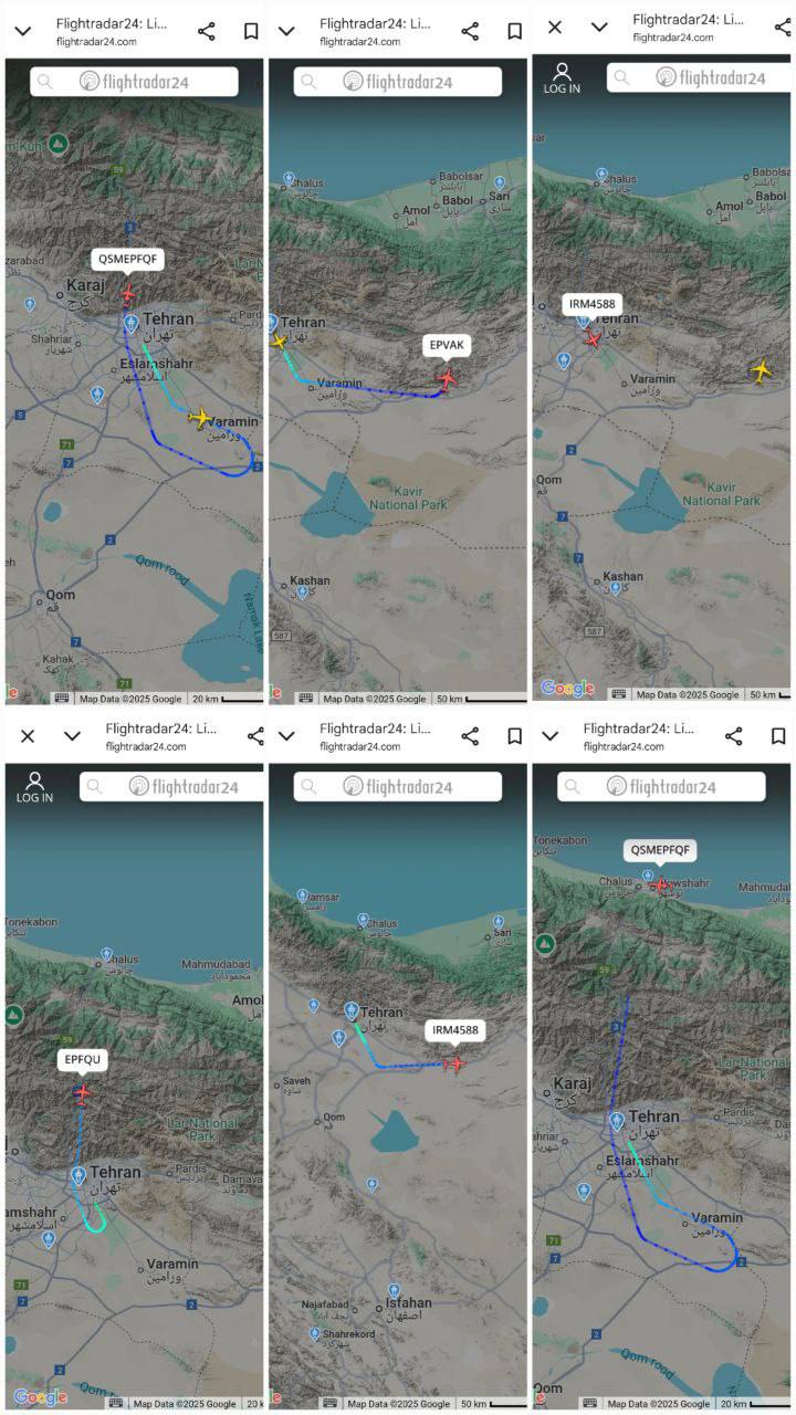 هواپیماها پشت سر هم از تهران بلند میشن و بعد از چند دقیقه رادارش خاموش میشه. حالا یا تخلیه هواپیمایی، یا اینکه توش تجهیزاتم هست چون مقصدها مختلفه و هرکدوم یه شهر میشینه.