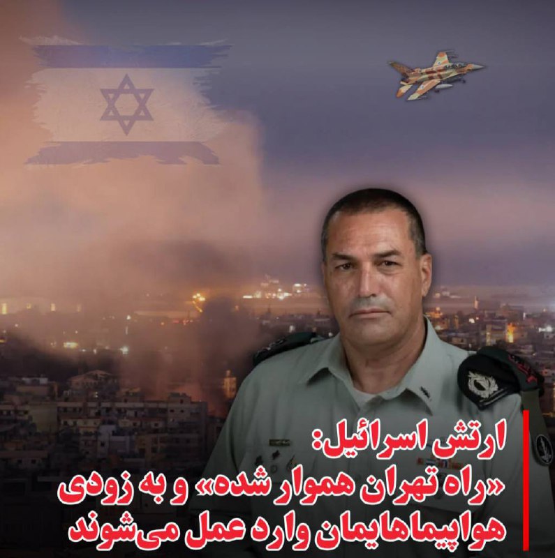 در این بیانیه آمده است: «مطابق با برنامههای عملیاتی، جنگندههای نیروی هوایی اسرائیل بهزودی حملات به اهدافی در تهران را آغاز خواهند کرد.»