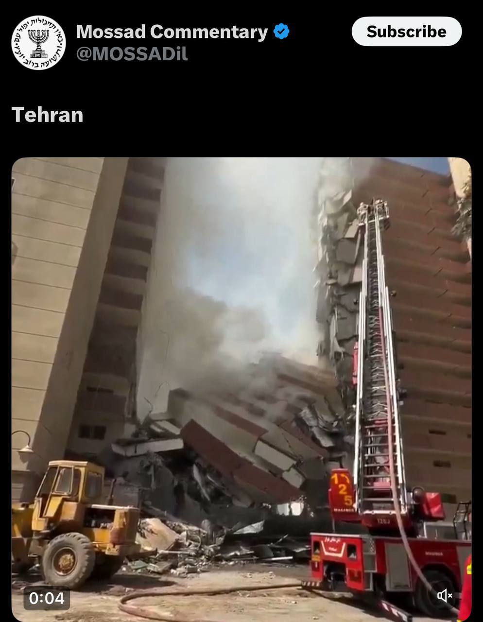 حساب رسمی موساد در شبکههای اجتماعی با انتشار ویدیو از محل حادثه، تنها یک کلمه نوشت: