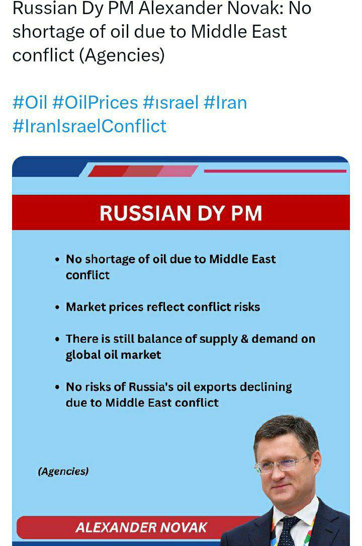 اجازه افزایش قیمت نفت را نمی دهیم!! 🔸️با تنظیم ورود نفت به بازار ، علیرغم درگیری ایران و اسرائیل در خاورمیانه، بازار جهانی با کمبود نفت مواجه نیست! 🔸️جنگ در خاورمیانه خطری برای صادرات نفت روسیه ندارد. دیدگاهتان را بنویسید لغو پاسخدیدگاهبرای ارسال دیدگاه نام یا نامکاربری خود را وارد کنید برای ارسال دیدگاه آدرس ایمیل خود را وارد کنید آدرس وبسایت خود را وارد کنید (اختیاری) ذخیره نام، ایمیل و وبسایت من در مرورگر برای زمانی که دوباره دیدگاهی مینویسم. Δ