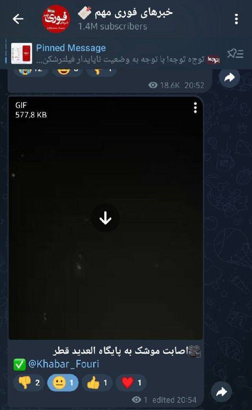 ▫️وزارت دفاع قطر ضمن اعلام رهگیری حملات موشکی انجام شده به پایگاه العدید تاکید کرد که این حملات بدون برخورد بوده خسارتهای انسانی و مادی در پی نداشته است.