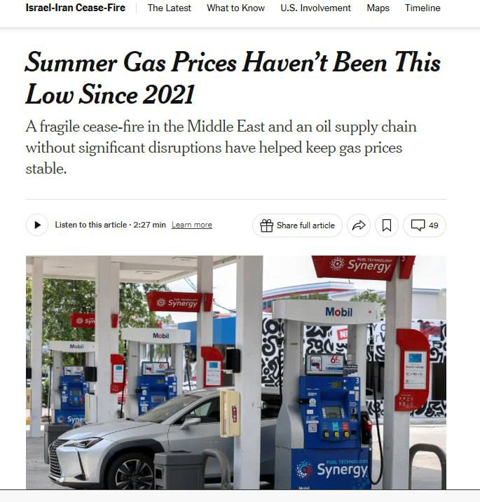 🔸با ادامه برنامه های اقتصادی ترامپ، قیمت سوخت تابستانی در ایالات متحده به پایینترین سطح خود در چهار سال گذشته رسید. دیدگاهتان را بنویسید لغو پاسخدیدگاهبرای ارسال دیدگاه نام یا نامکاربری خود را وارد کنید برای ارسال دیدگاه آدرس ایمیل خود را وارد کنید آدرس وبسایت خود را وارد کنید (اختیاری) ذخیره نام، ایمیل و وبسایت من در مرورگر برای زمانی که دوباره دیدگاهی مینویسم. Δ