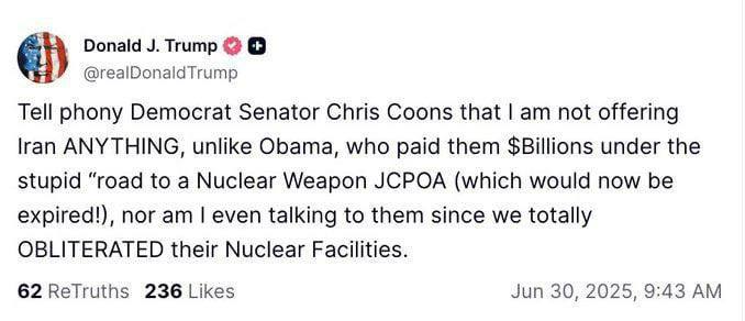 🔹من حتی با آنها صحبت هم نمیکنم چون ما تأسیسات هستهای آنها را نابود کردیم.