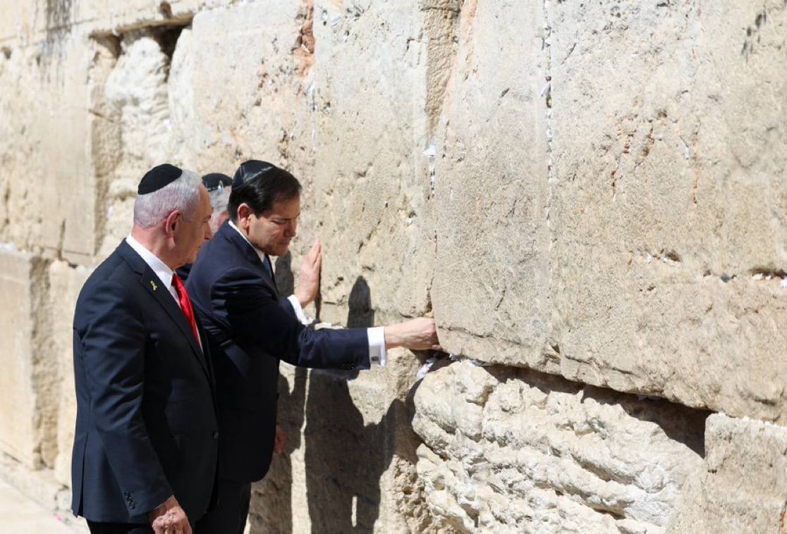 مارکو روبیو، وزیر خارجه ایالات متحده، در جریان سفر خود به اسرائیل، همراه با بنیامین نتانیاهو، نخستوزیر این کشور از دیوار ندبه دیدن کرد.