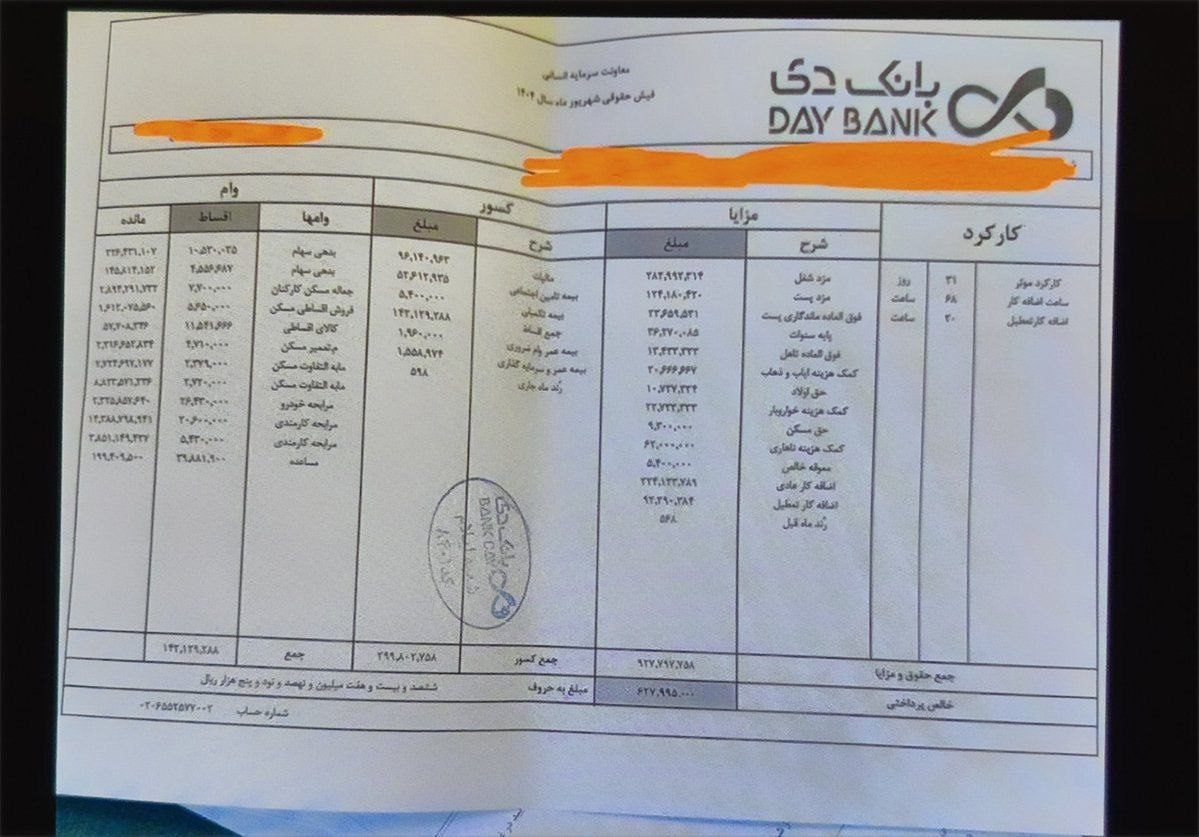 یه فیش حقوقی از یه کارمند بانک دی تو ایلام منتشر شده که نکته جالبش علاوه به ۹۲ میلیون حقوق و مزایا، ۴/۵ میلیارد وامه که قسطش فقط ۱۴ میلیونه و یکی از وامها ۱/۵ میلیارده و قسطش ۲ میلیون یعنی وام با اقساط بیش از ۶۰ سال! همین وام رو بذاره صندوق سود بگیره ماهی ۱۱۵ میلیون سودشه!