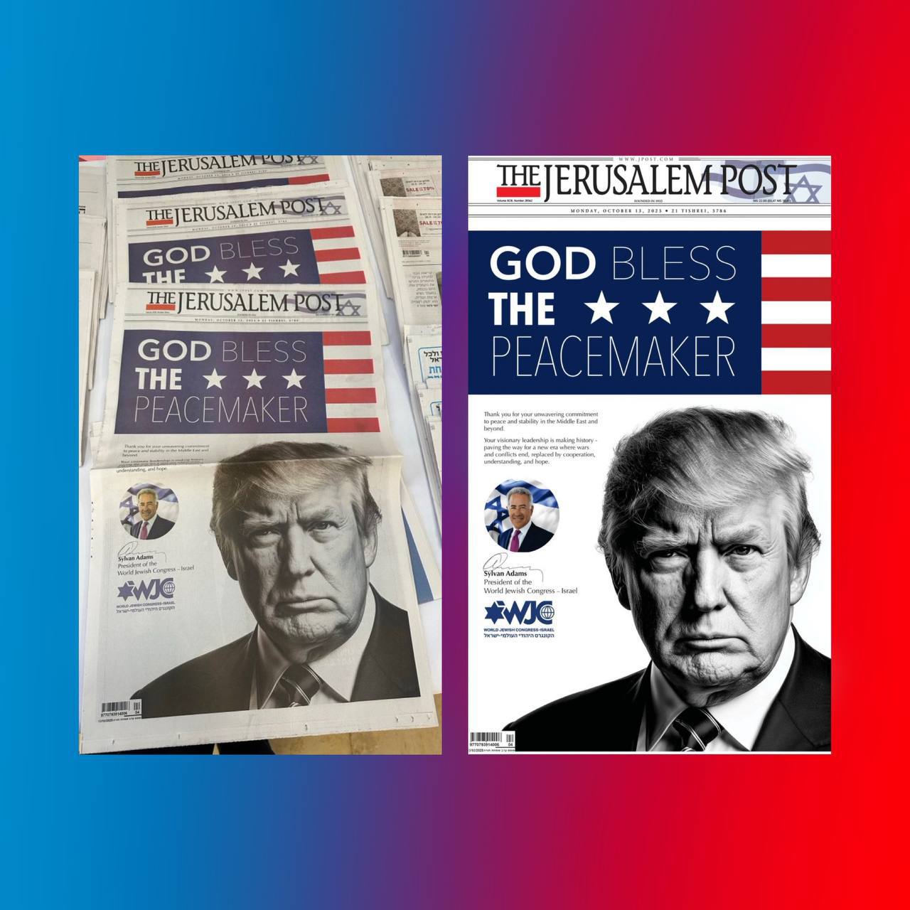 صفحه نخست روزنامه جروزالم پست امروز، ۱۳ اکتبر (۲۱ مهرماه)، با تیتر «برکت خداوند بر برقرارکننده صلح» به چاپ رسیده است؛ تیتر واضحی که به دونالد ترامپ، رئیسجمهور ایالات متحده، اشاره دارد و نقش او را در میانجیگری آتشبس میان اسرائیل و حماس ستایش میکند.