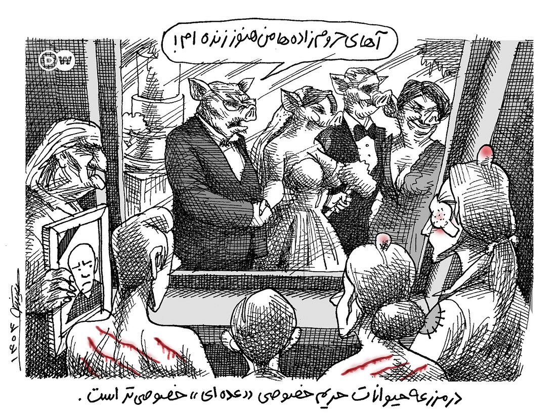 آیا در ایران، تقدس حریم خصوصی مختص به طبقه خاصی است؟ آیا قشر حاکم، با دعوی دین و شریعت و خوانشهای طالبانی از مساله حجاب، با سابقه دههها سرکوب مردم حق دارد به بهانه حریم خصوصی، در خلوت آن کار دیگر بکند؟ آیا حق دارد سیاست گرسنگی و زجر را به عموم تحمیل کرده خود در پنتهاوس زندگی کند و در تالار مراسم بگیرد.