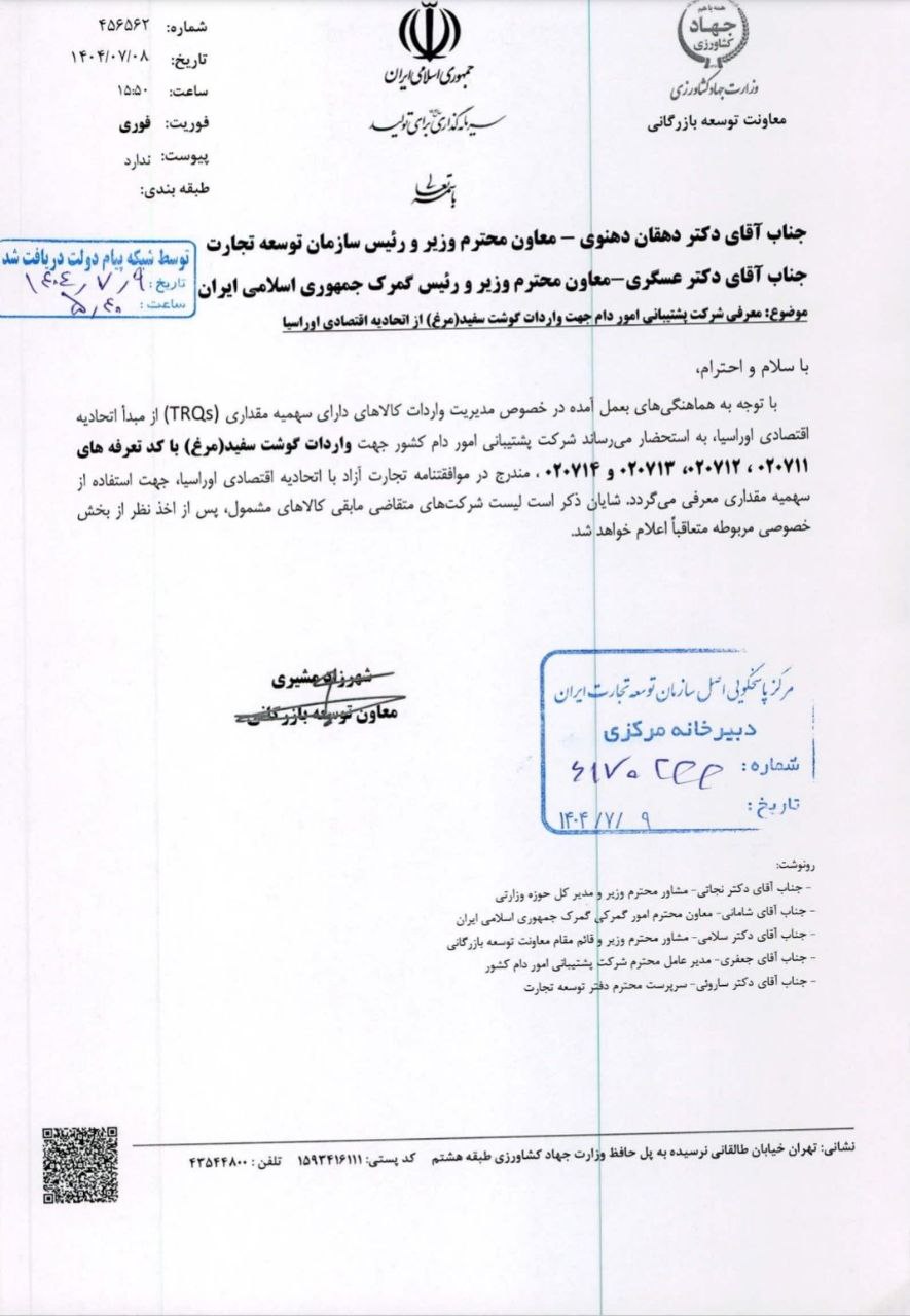 ۱. ارز ۲۸۵۰۰ بدی به تولید مرغ ۲. بازم قیمت مرغ تولیدی جهانی باشه!!! ۳. آخرش هم برای تنظیم بازار مرغ وارد کنی! 📊 دیدگاهتان را بنویسید لغو پاسخدیدگاهبرای ارسال دیدگاه نام یا نامکاربری خود را وارد کنید برای ارسال دیدگاه آدرس ایمیل خود را وارد کنید آدرس وبسایت خود را وارد کنید (اختیاری) ذخیره نام، ایمیل و وبسایت من در مرورگر برای زمانی که دوباره دیدگاهی مینویسم. Δ