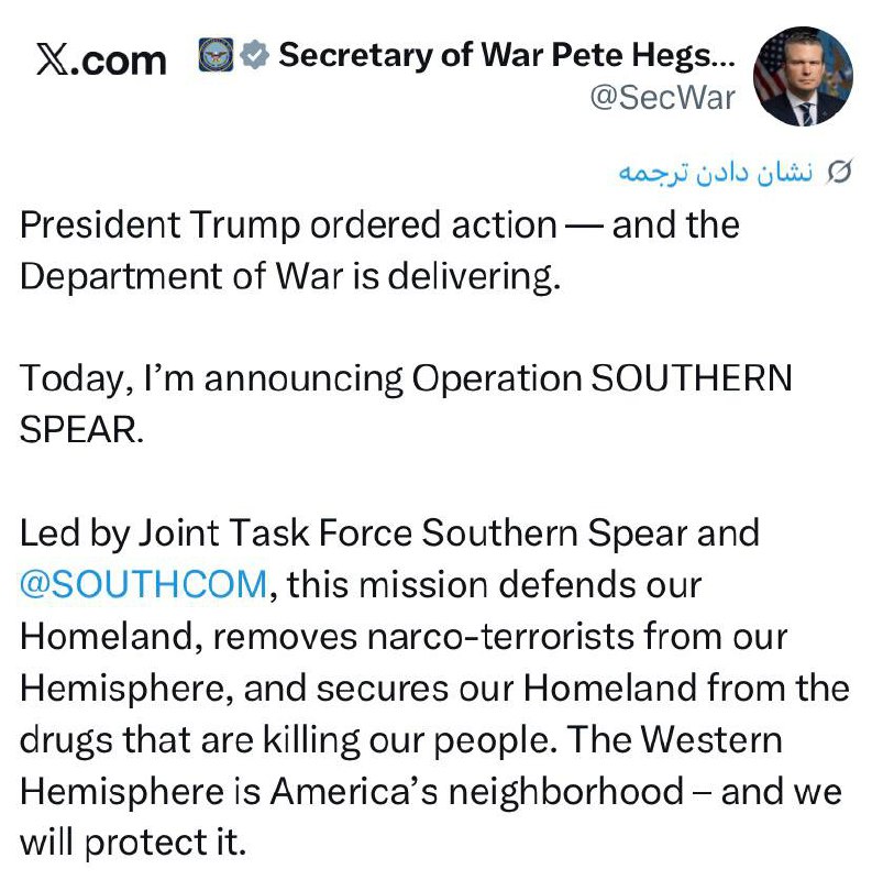 دستور رئیسجمهور ترامپ صادر شده ـ و وزارت جنگ در حال اجرای آن است.