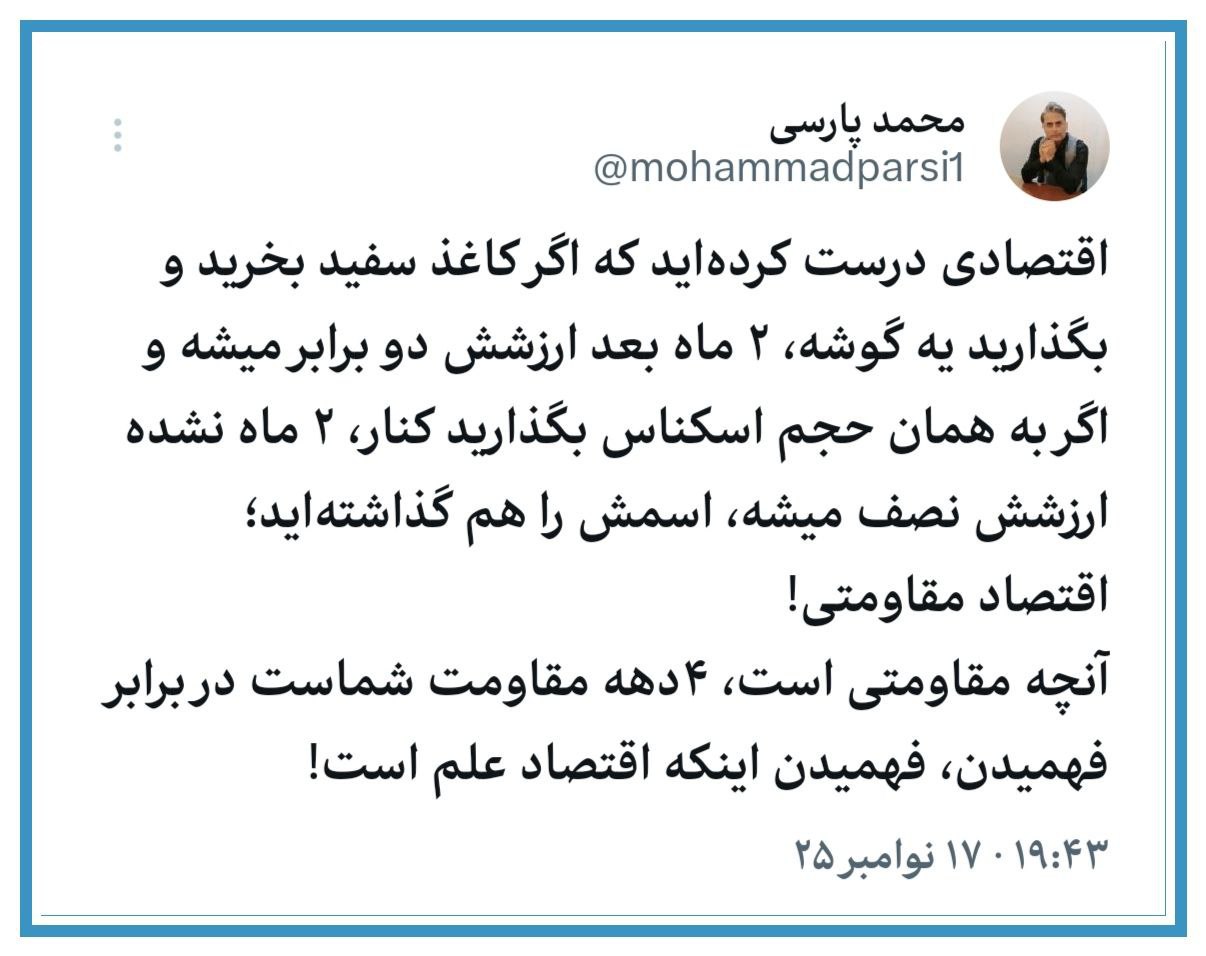 🔹آنچه مقاومتی است، ۴دهه مقاومت شماست در برابر فهمیدن، فهمیدن اینکه اقتصاد علم است!