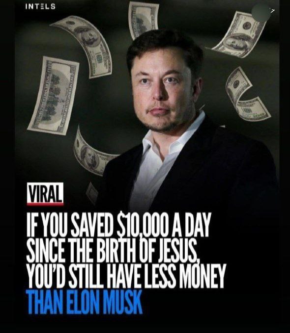 اگر فردی از روز تولد عیسی مسیح، روزانه ۱۰ هزار دلار پسانداز میکرد همچنان ثروت او کمتر از ایلان ماسک میشد! دیدگاهتان را بنویسید لغو پاسخدیدگاهبرای ارسال دیدگاه نام یا نامکاربری خود را وارد کنید برای ارسال دیدگاه آدرس ایمیل خود را وارد کنید آدرس وبسایت خود را وارد کنید (اختیاری) ذخیره نام، ایمیل و وبسایت من در مرورگر برای زمانی که دوباره دیدگاهی مینویسم. Δ