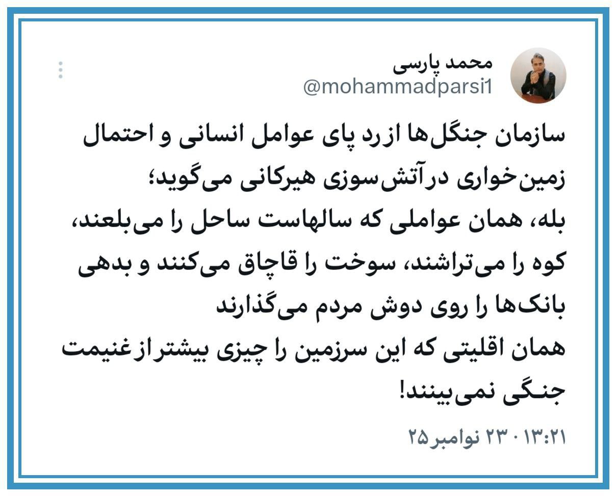 🔻سازمان جنگلها از رد پای عوامل انسانی و احتمال زمینخواری در آتشسوزی هیرکانی میگوید؛