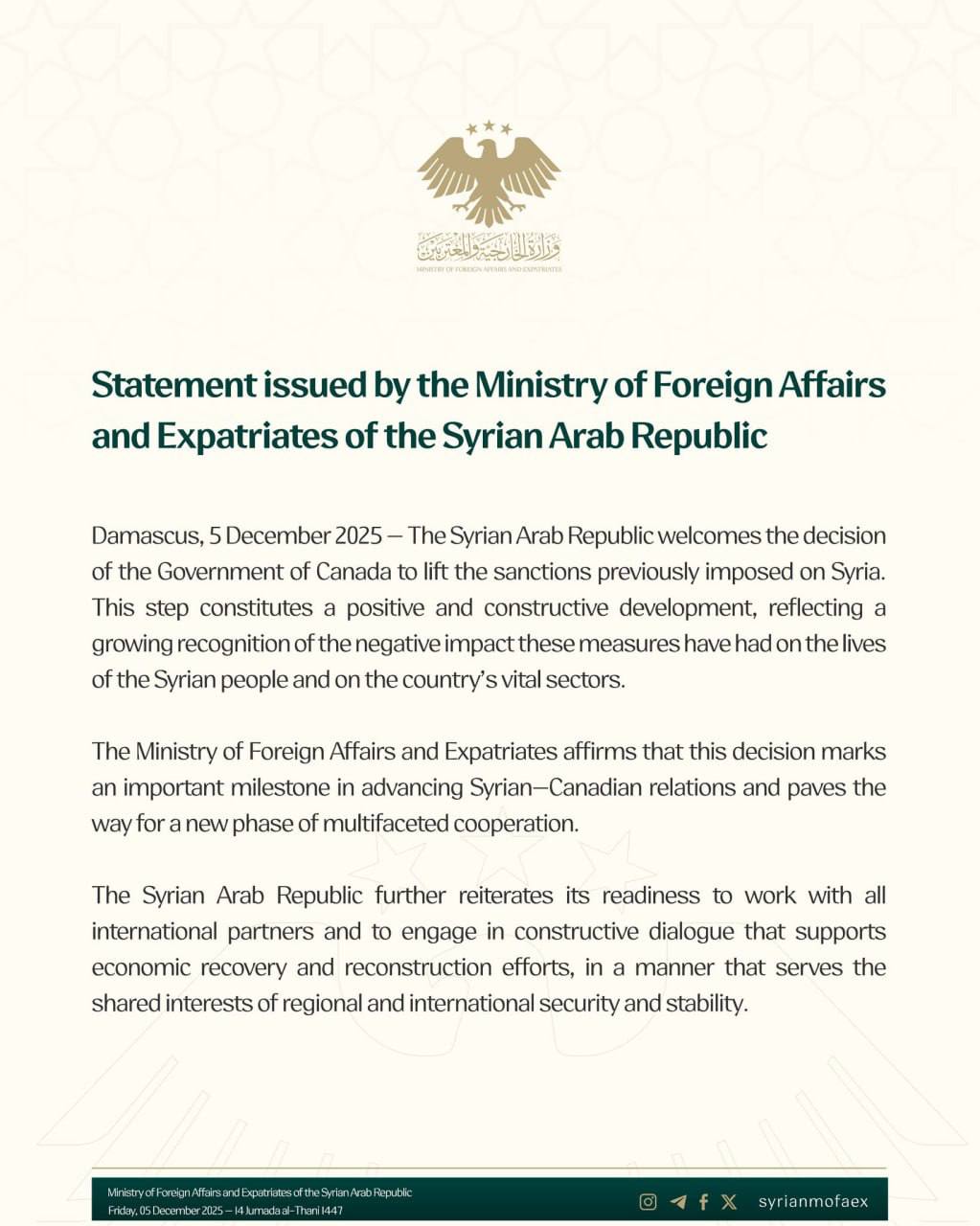 وزارت خارجه سوریه از این اقدام استقبال کرده و آن را گامی مهم در روابط دوجانبه دانسته که میتواند راه را برای همکاریهای آینده هموار کند. ✅ دیدگاهتان را بنویسید لغو پاسخدیدگاهبرای ارسال دیدگاه نام یا نامکاربری خود را وارد کنید برای ارسال دیدگاه آدرس ایمیل خود را وارد کنید آدرس وبسایت خود را وارد کنید (اختیاری) ذخیره نام، ایمیل و وبسایت من در مرورگر برای زمانی که دوباره دیدگاهی مینویسم. Δ