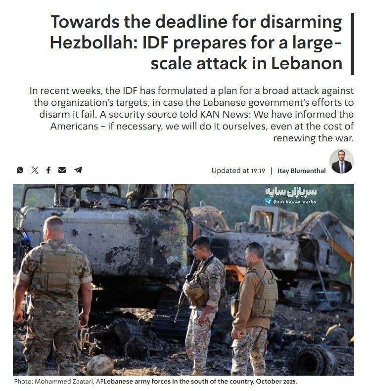 🔴#اسرائیل یک طرح نظامی جامع برای حمله گسترده به #حزب_الله لبنان تدوین کرده است، اگر دولت و ارتش #لبنان تا پایان سال ۲۰۲۵ نتوانند این گروه را خلع سلاح کنند. 📶 پروکسی دائمی ⛔️ دیدگاهتان را بنویسید لغو پاسخدیدگاهبرای ارسال دیدگاه نام یا نامکاربری خود را وارد کنید برای ارسال دیدگاه آدرس ایمیل خود را وارد کنید آدرس وبسایت خود را وارد کنید (اختیاری) ذخیره نام، ایمیل و وبسایت من در مرورگر برای زمانی که دوباره دیدگاهی مینویسم. Δ